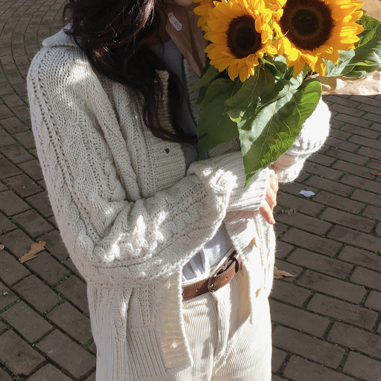 |SLOWAND| # SLOWMADE Salted Back Point Cable Cardigan
